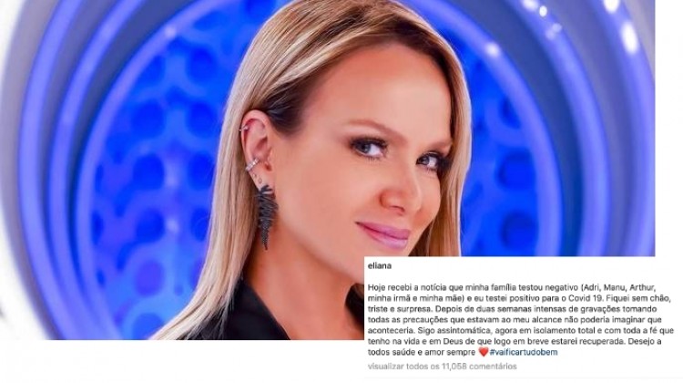 Ela também informou que a infecção foi de forma assintomática, e na mensagem escrita para os fãs, Eliana contou como foi a reação ao saber do resultado positivo para o vírus.
